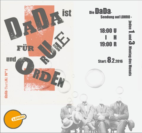 Wir sind bei LOHRO nicht das einzige Radio, was zu diesem Thema agiert, nicht mal das einzige Bürgerradio. Macht aber nichts, wir sind wenigstens der einzige Standort ohne Dada-Vergangenheit. Deshalb auch der Blick über den Tellerrand nach Weimar, wo seit dem 15.1.2016 schon des Fünfte Jahr der DaDaDekaDe eingeläutet wurde. Warum und weshalb, das erklärt Michael von Hinzenstern am besten selber – wir freuen uns, am 22.2. bei LOHRO über die Weimarer Aktivitäten berichten zu können. Wer neugierig ist, schaue sich auf deren Seite um: http://www.dadamenta.eu/