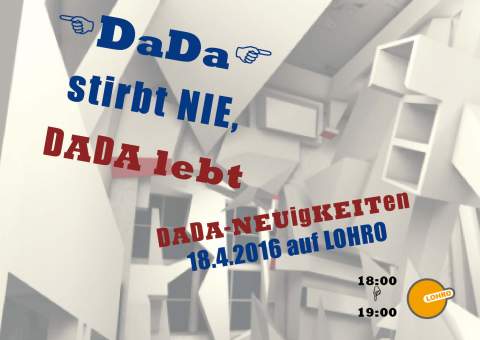 Das DaDa-Tertial erreicht seinen Wonnemonat Mai und für uns wird es langsam Zeit, dadaistische Tatsachen zu schaffen. Denn 100 Jahre später ist DaDa eben nicht nur eine Bewegung der Vergänglichkeit, sondern setzt auch Zeichen. Zum Beispiel an der Fassade der Frieda 23 und wem die leere Fläche verstört, der kann am Montag sich bei LOHRO erklären lassen, was diese soll und auch die Frage nach dem hochgelegten Kaninchenstall, der in Lichtweite seinen Platz gefunden hat, werden wir beantworten. so wollen wir am Montag in unserer Sendung die Gegenwart erklären und die Vergangenheit zu Wort kommen lassen. Denn Harrys Lieblingsdadaisten sollen nun auch endlich im Mittelpunkt stehen: Wenzel und Mensching haben zwar schon immer mal in Ansätzen in der Sendung von sich hören lassen, aber gerade die sind so prägend in der DaDaEr gewesen, das diese auch in einer -fast – eigenen Sendung gewürdigt werden sollen. Aber nicht nur – es gibt auch Töne vom Dada-Balkon, der Hinweis auf eine DaDa-Plakatausstellung und eine Veranstaltungsankündigung, die schon lesbar in den Programmen vo Literaturhaus und vom LIWU ist. Viel Spaß.